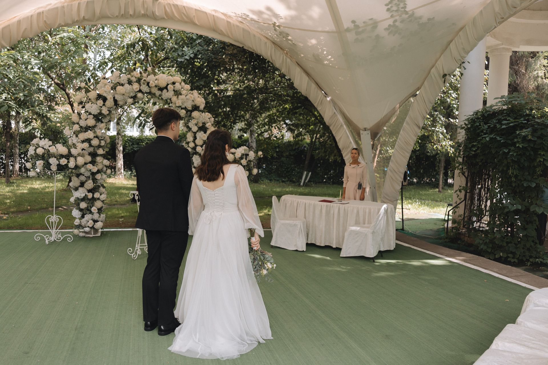 - если погода позволяет, церемонию проведут на улице в шатре (в плохую погоду проводят в зале в гостинице)